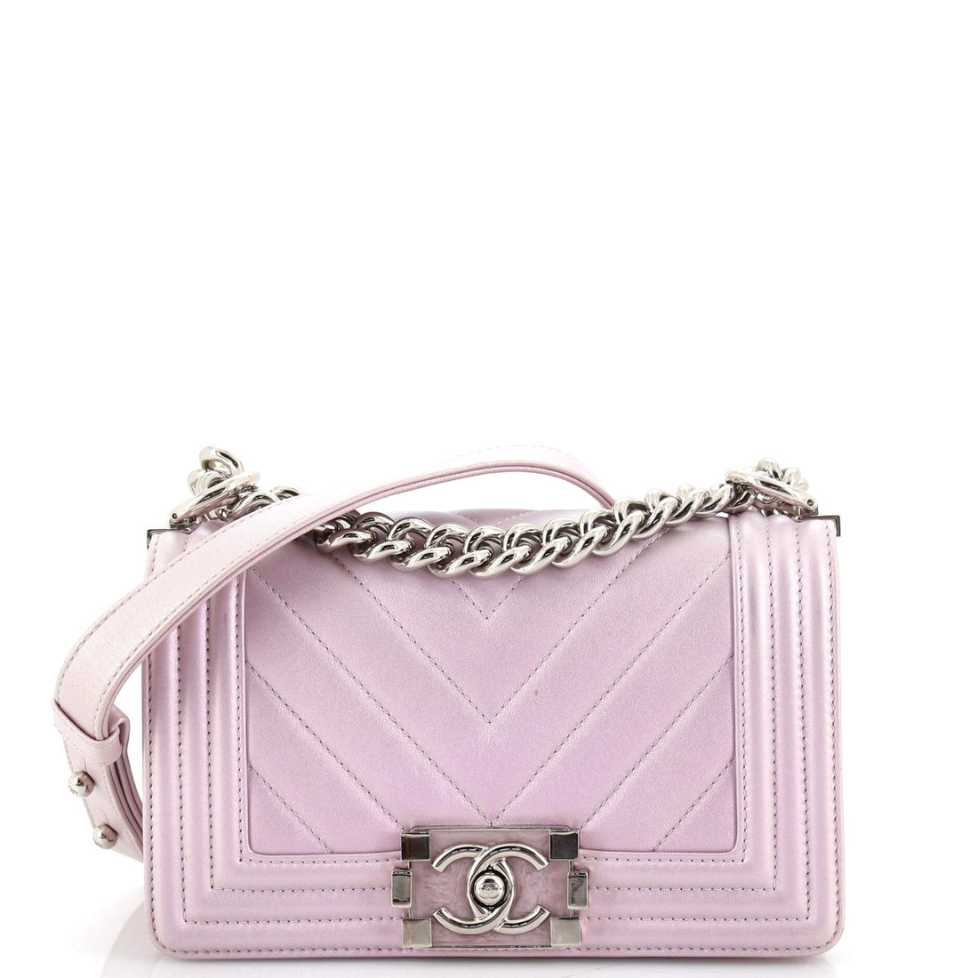 Discover the CHANEL Boy Flap Bag Chevron Iridescent Calfskin with Resin Hardware Small, a stunning...