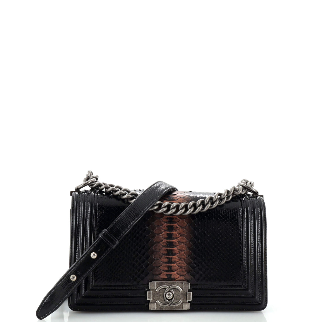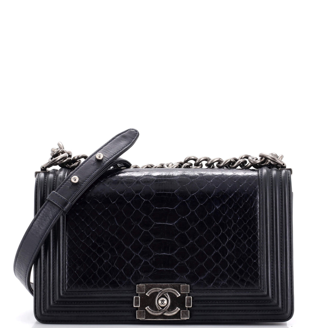 Discover the exquisite CHANEL Boy Flap Bag Python Small, a standout in designer luxury handbags....