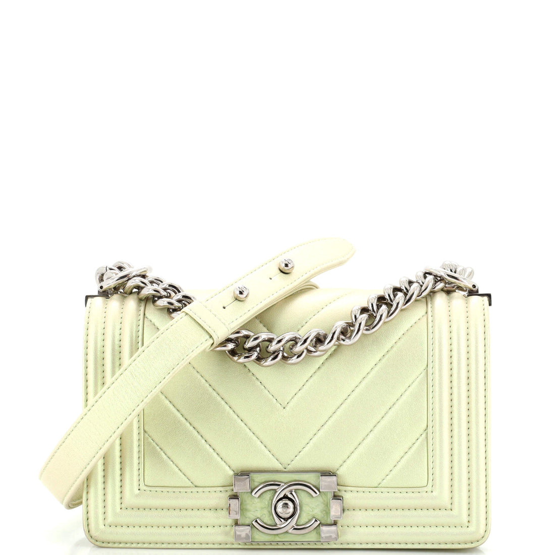 Discover the elegance of the CHANEL Boy Flap Bag Iridescent Chevron Lambskin Small, a stunning...