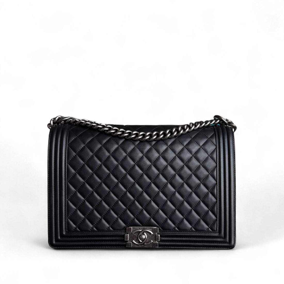 Chanel Boy Large - Quilted Lambskin Black Ruthenium Silver Hardware Series 18