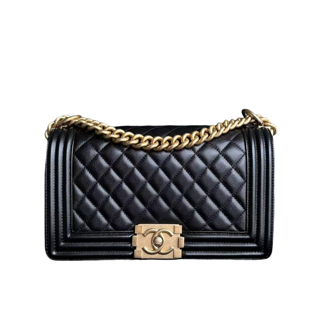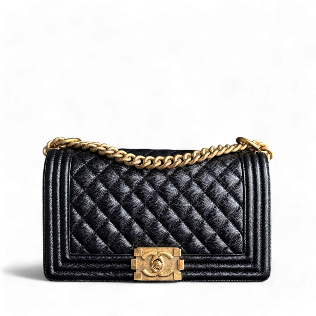 Chanel Boy Medium - Caviar 25CM Quilted Black Aged Gold Hardware Series 23