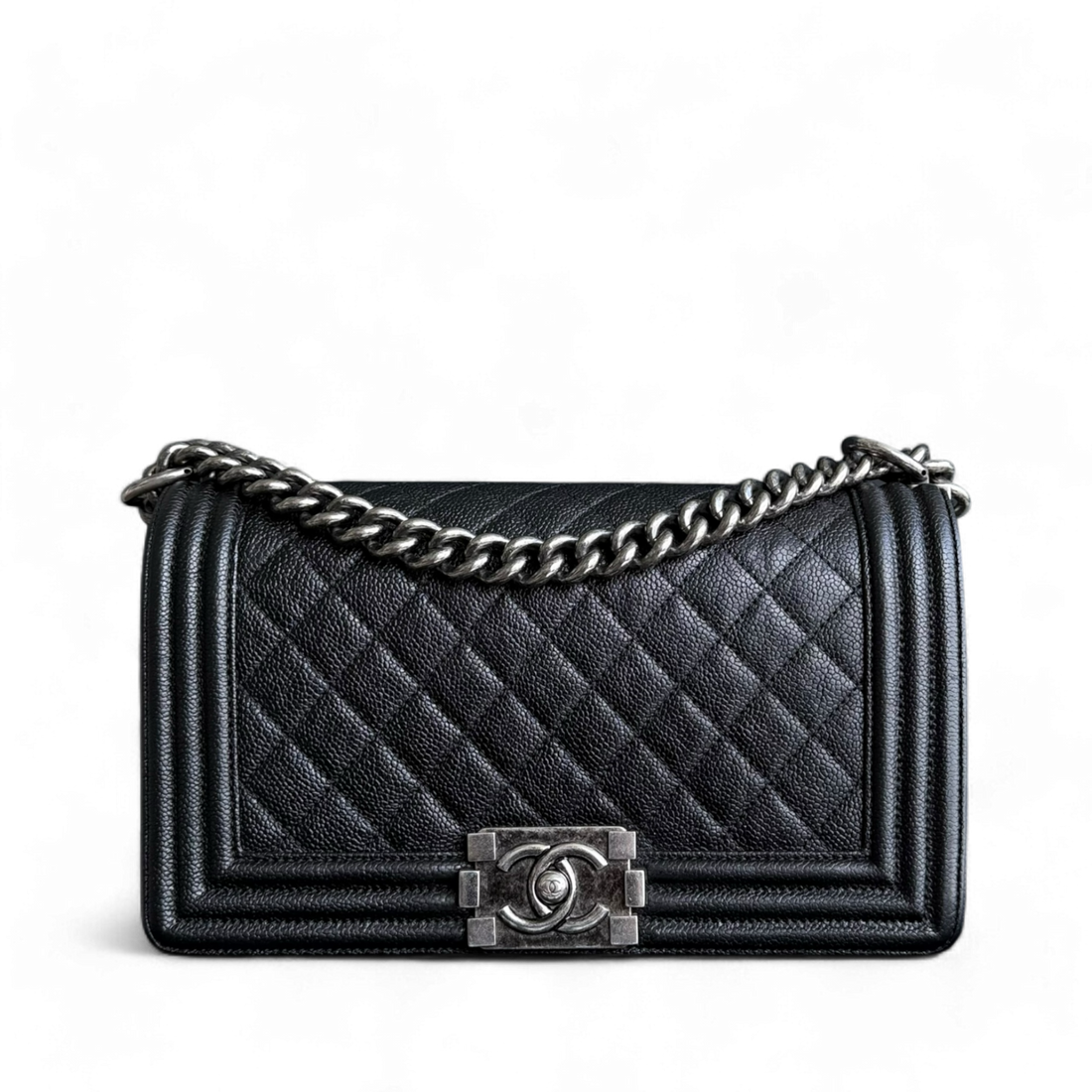 Chanel Boy Medium - Caviar 25CM Quilted Black Ruthenium Silver Hardware Series 25