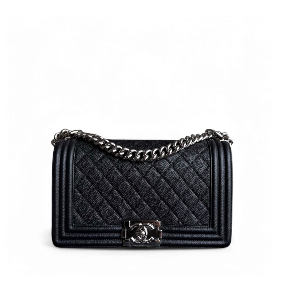 Overview Experience timeless elegance with the Chanel Boy Medium in luxurious Caviar leather. The deep...