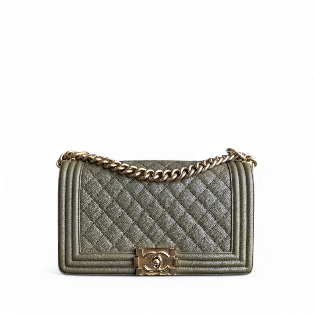 Chanel Boy Medium - Caviar 25CM Quilted Green Gold Hardware