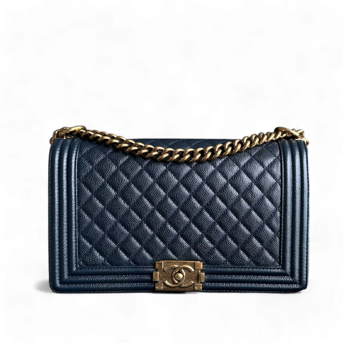 Chanel Boy Medium - Caviar 25CM Quilted Midnight Dark Blue Gold Hardware Series 27