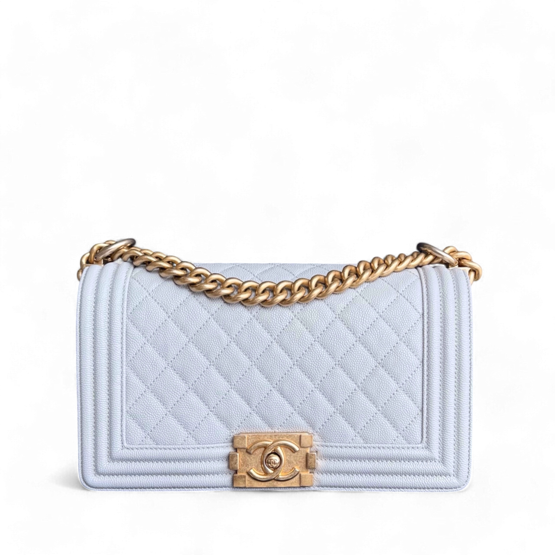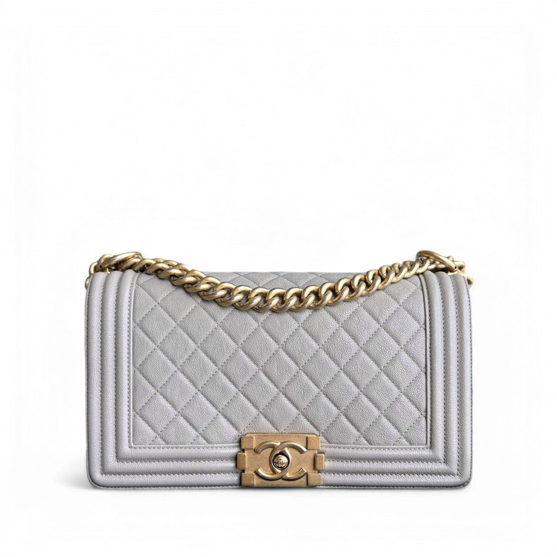 Chanel Boy Medium - Caviar 25CM Quilted Light Grey Gold Hardware