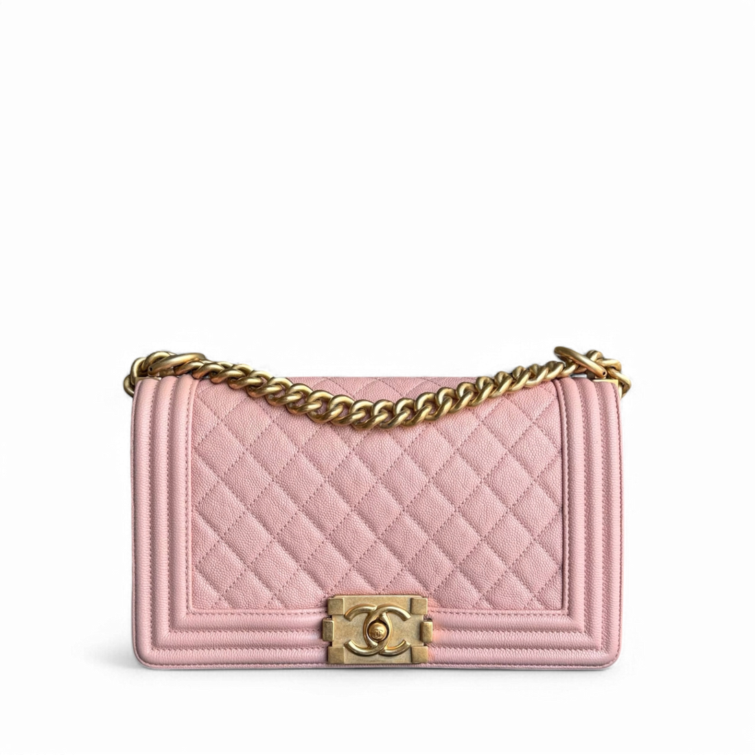 Chanel Boy Medium - Caviar 25CM Quilted Pink Gold Hardware Series 25