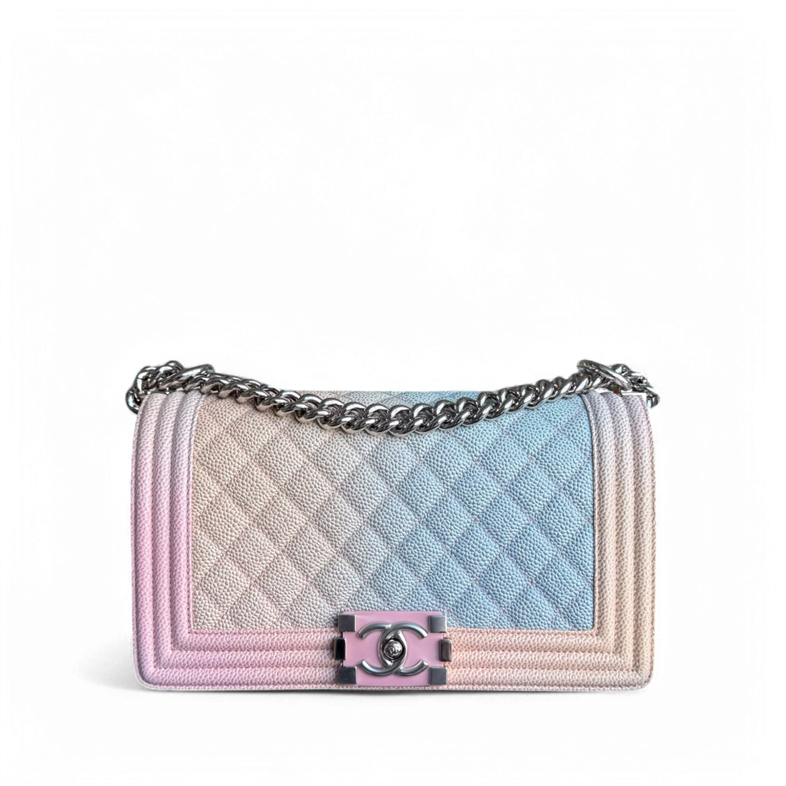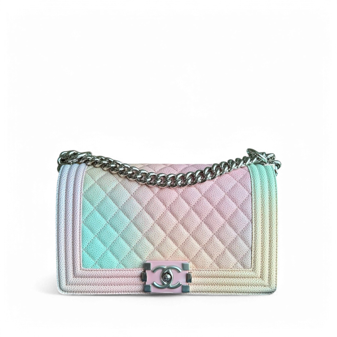 Overview Chanel Boy Medium in Caviar Rainbow—a dazzling masterpiece that captures the essence of luxury....