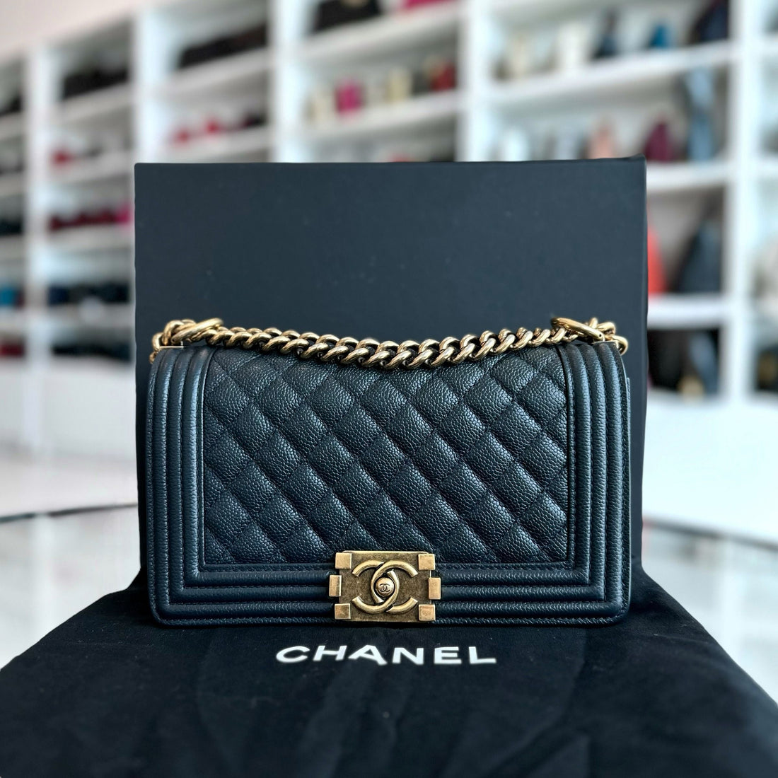 Chanel Boy Medium - Caviar Quilted Grained Calfskin Black Gold Hardware