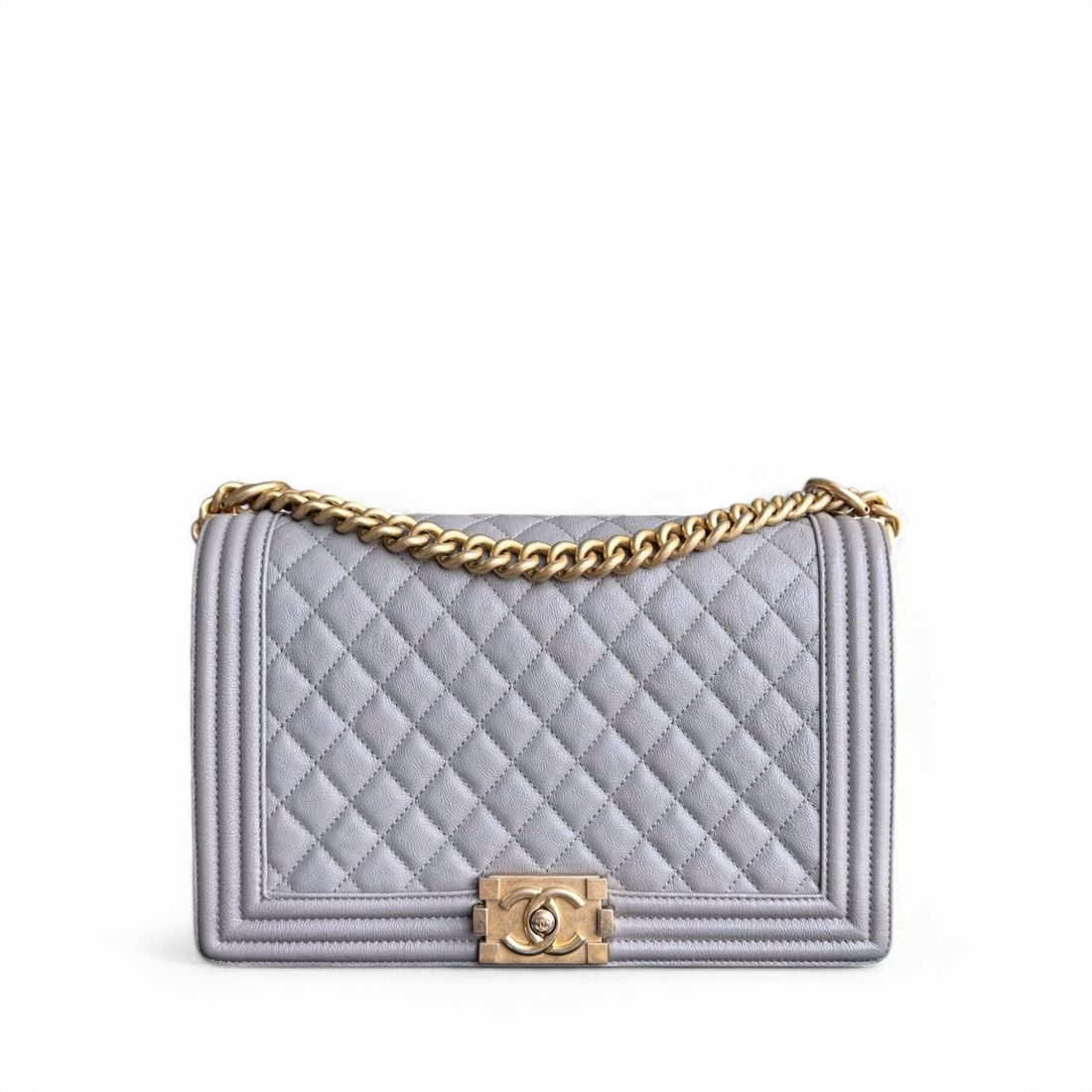 Chanel Boy Medium - Caviar 28CM Quilted Grey Gray Gold Hardware Series 26