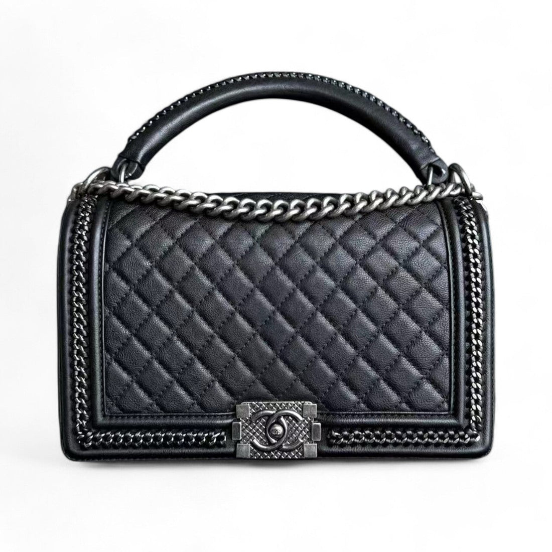 Chanel Boy Medium Handle - 28CM Quilted Calfskin Palladium Silver Hardware Series 23