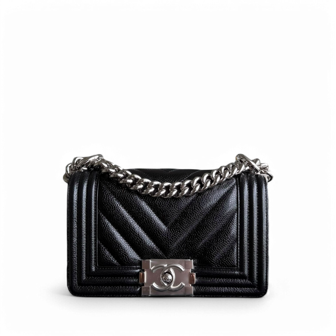 Chanel Boy Small - Caviar 20CM Chevron Black Silver Hardware Series 26
