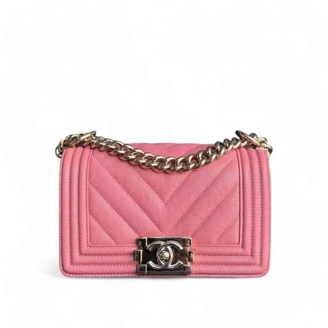 Chanel Boy Small - Caviar 20CM Chevron Pink Gold Hardware Series 28