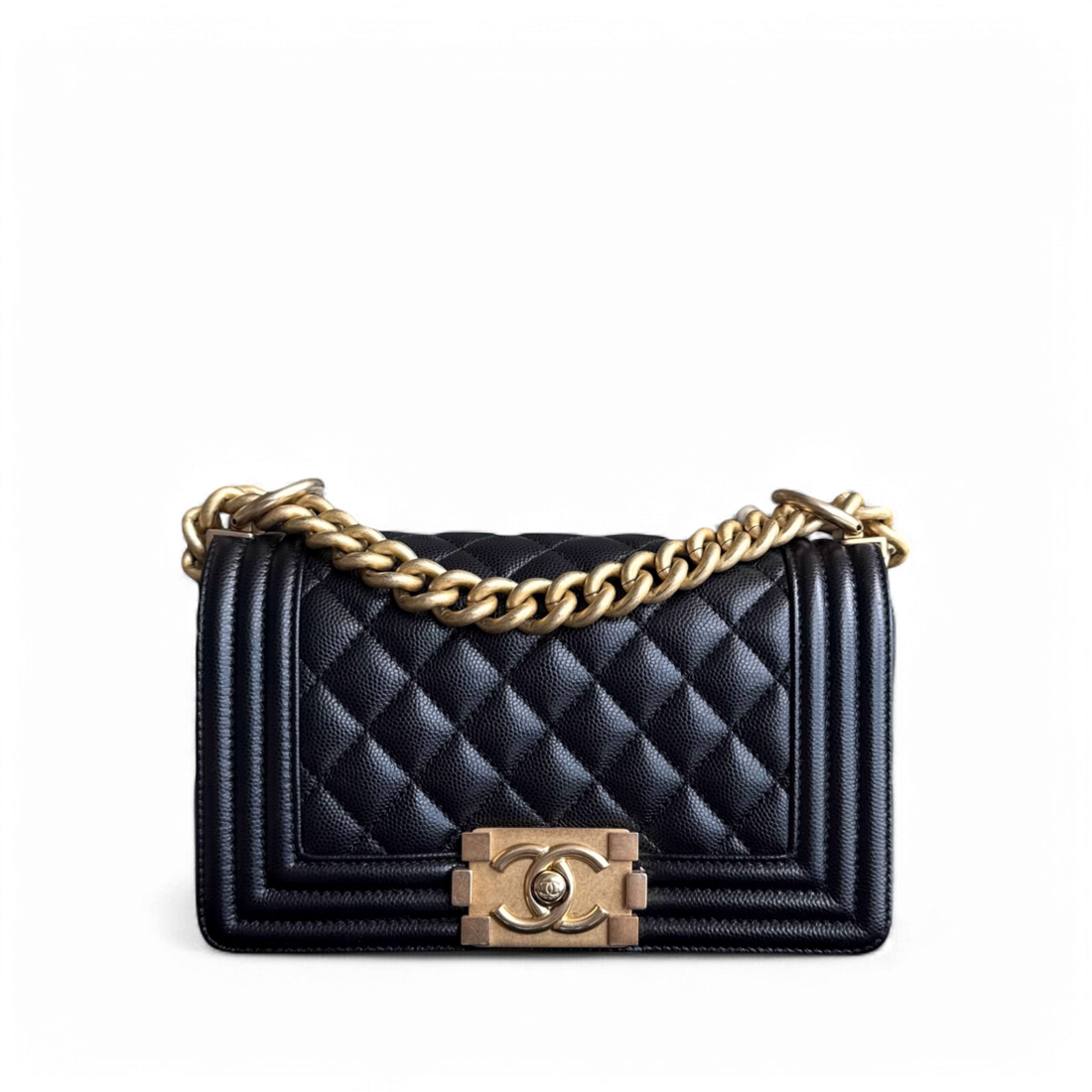Chanel Boy Small - Caviar 20CM Quilted Black Gold Hardware Series 23