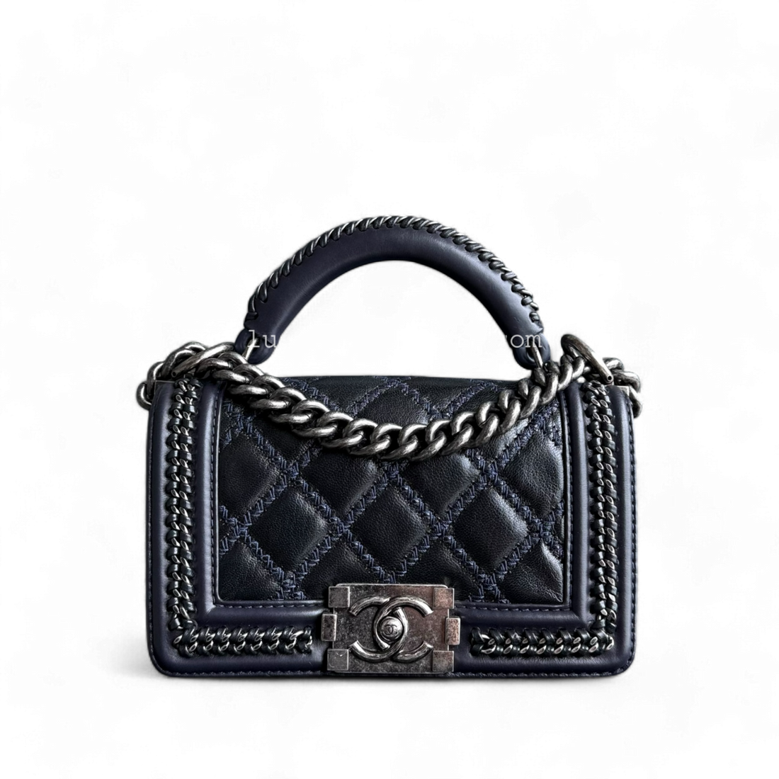 Chanel Boy Small Handle - 20CM Calfskin Chain Around Top Handle Limited Edition Dark Blue Ruthenium Silver Hardware Series 21