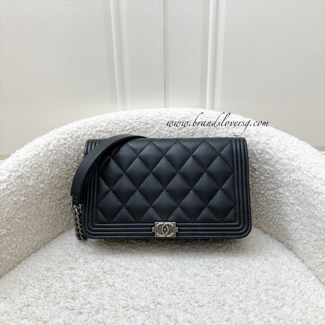 Chanel Boy Wallet on Chain WOC in Black Caviar and RHW