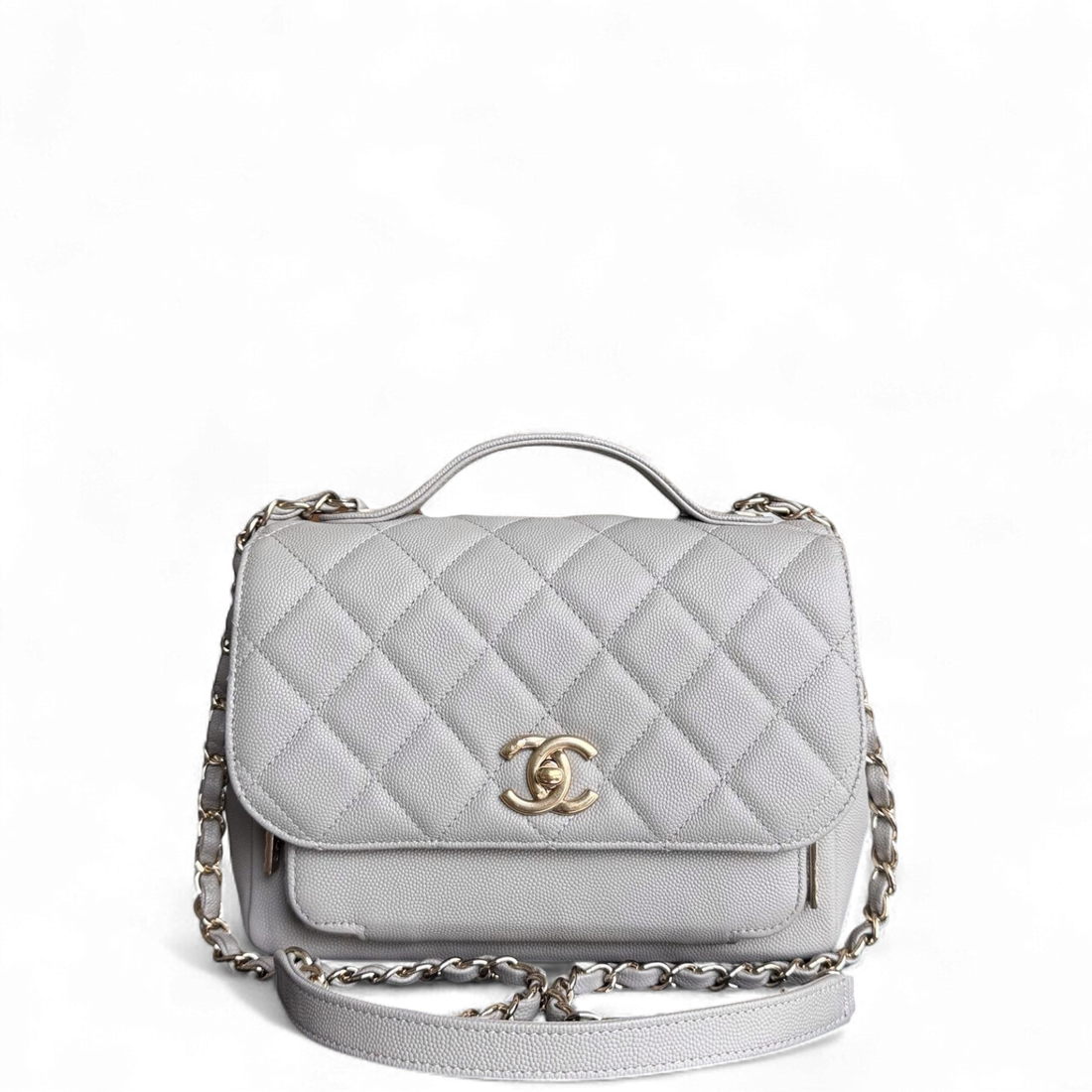 Chanel Business Affinity Medium - Caviar Quilted Grained Calfskin Grey Gray Gold Hardware Series 28