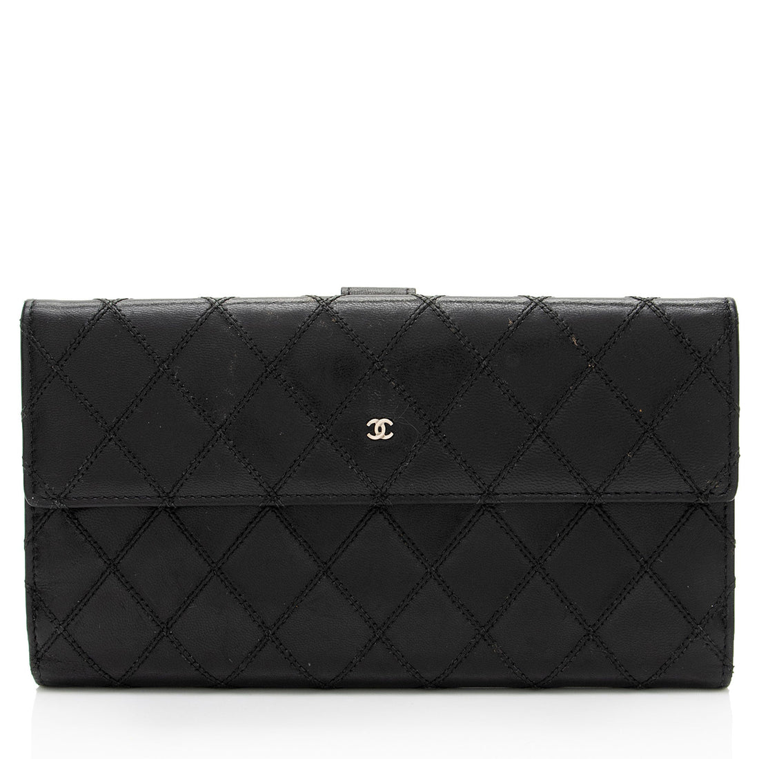 Chanel Calfskin Diamond Wild Stitch French Purse Wallet (SHF-snVzTa)