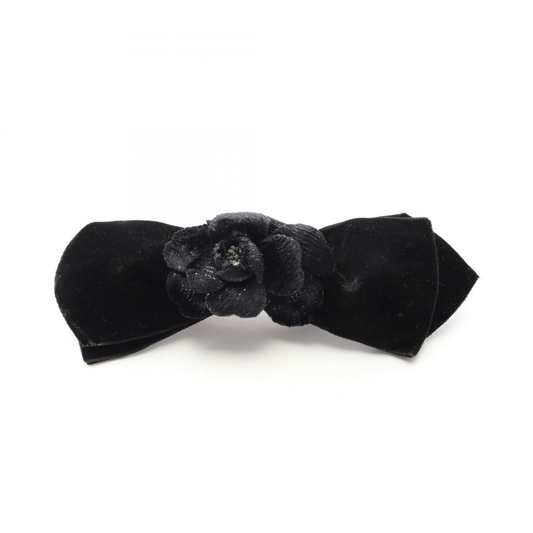 Indulge in the timeless elegance of the Chanel Camelia Velour Barrette. This exquisite hair accessory...
