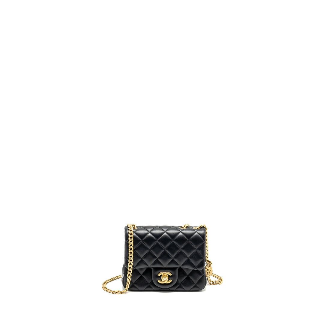 Chanel Camellia Adjustable Chain Mini Square Flap bag Lambskin black GHW (microchip)