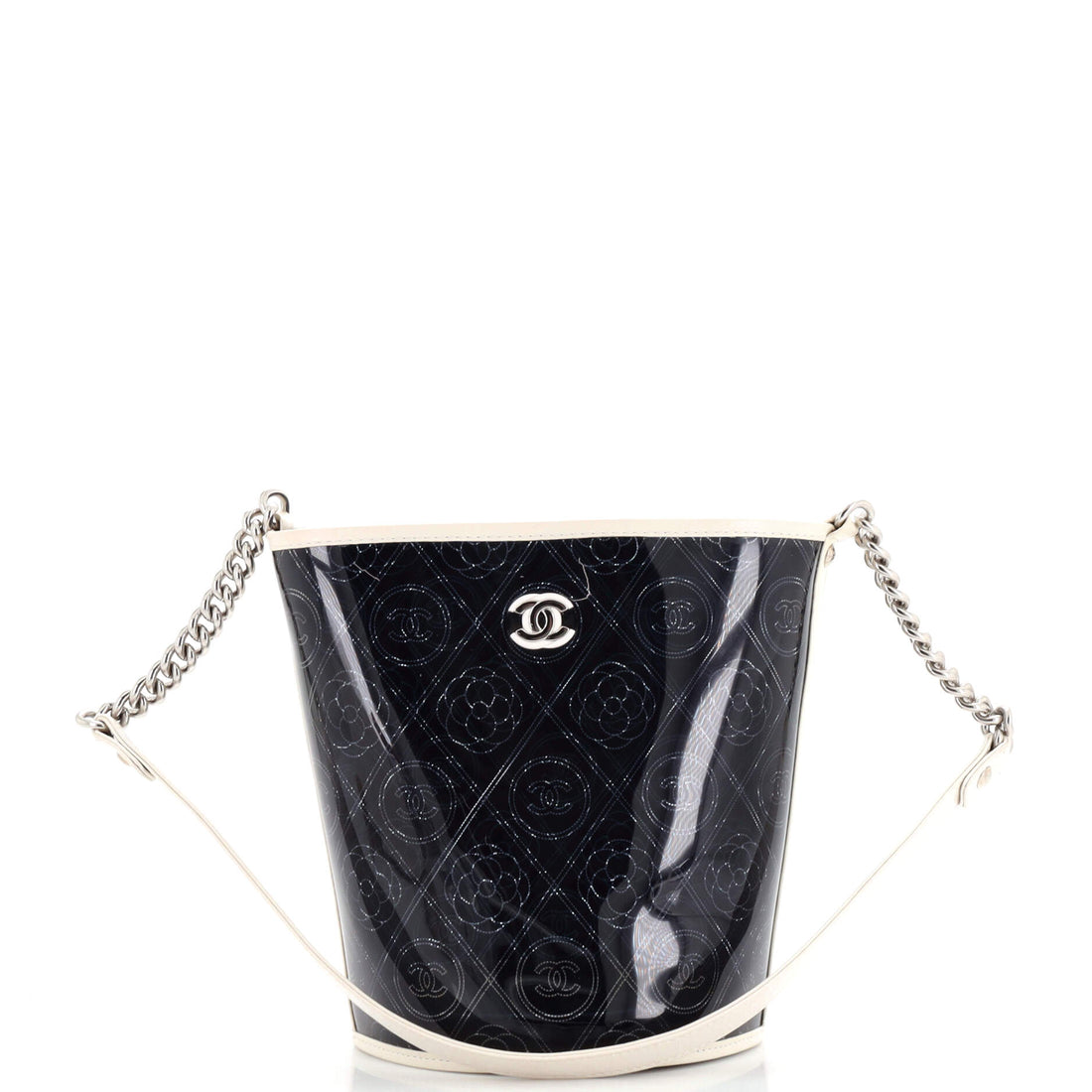 Discover the CHANEL Camellia Coco Bucket Bag Printed PVC Medium, a stunning addition to your...
