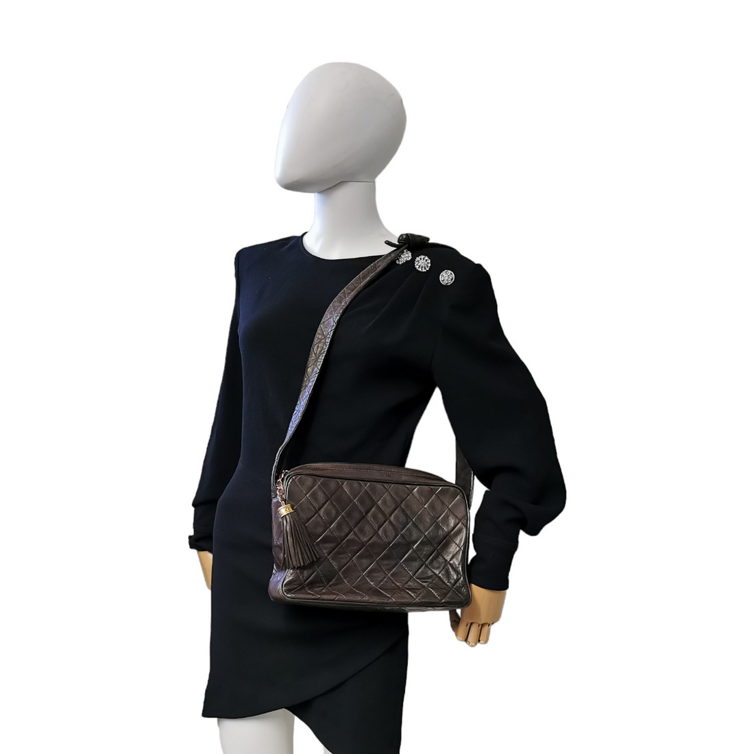 Chanel Camera Bag - Chevron Calfskin Small Black Shoulder Bag Series 21