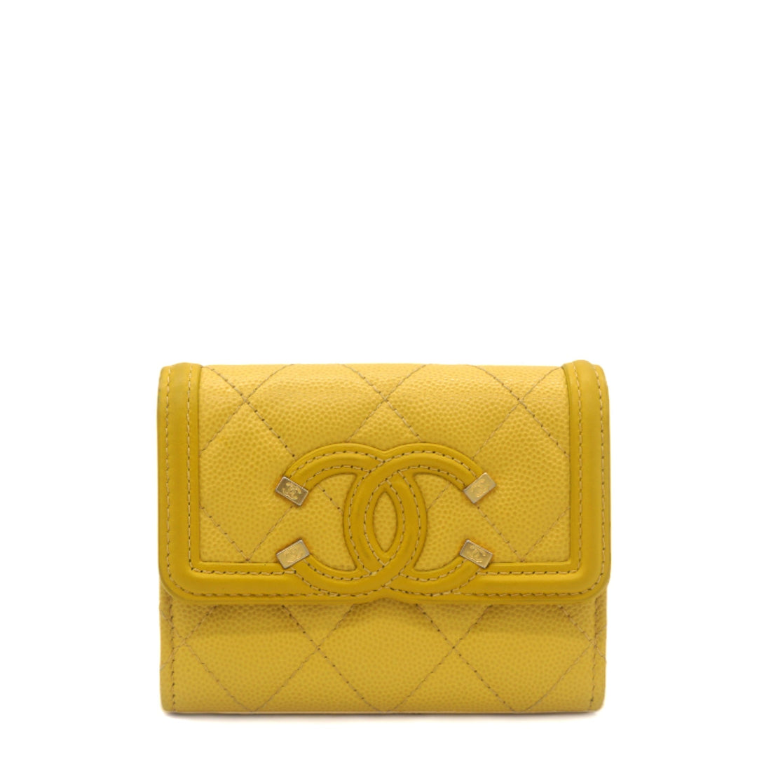 Chanel Caviar Quilted Filigree Flap Card Holder Yellow