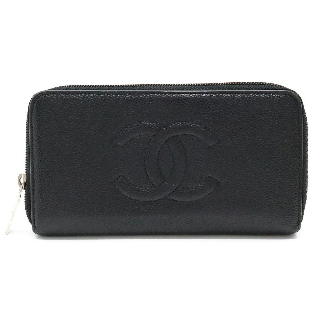Chanel Caviar Skin Coco Mark Long Wallet Black