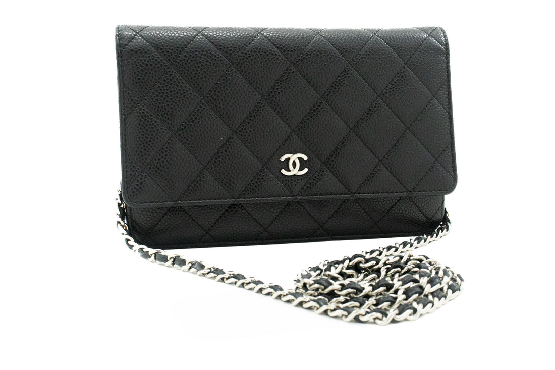 An authentic CHANEL Caviar Wallet On Chain WOC Black Shoulder Bag Crossbody k38 This item...