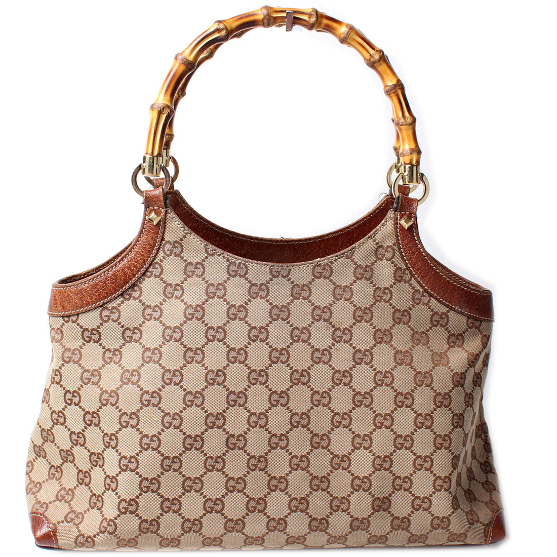 This Gucci Bamboo Handle Tote is guaranteed 100% authentic. The exterior is in the classic Gucci GG canvas. ...