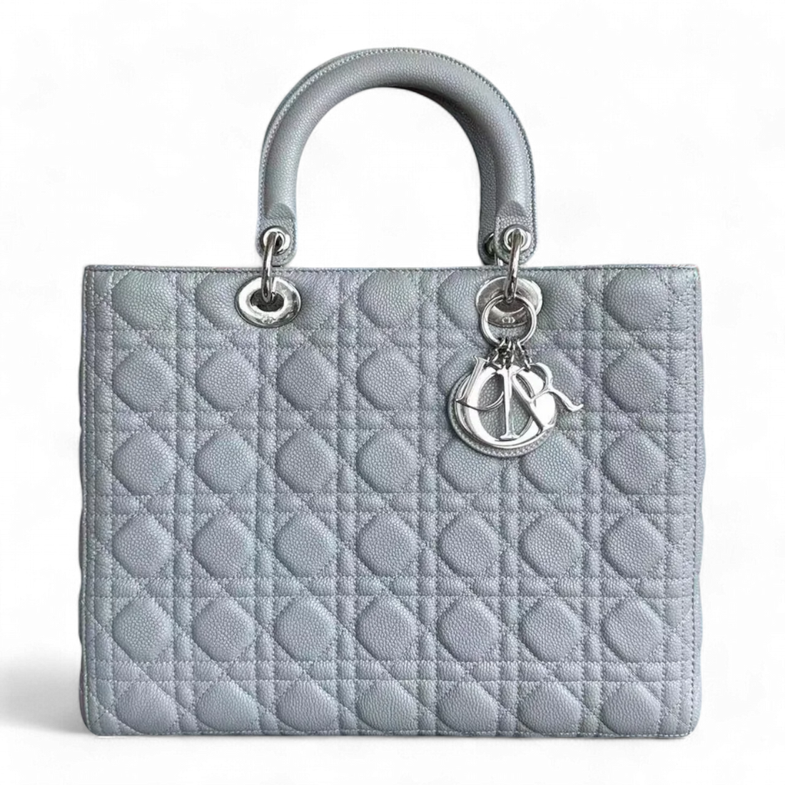*Caviar* Dior Lady Large Cannage Caviar Grained Calfskin Grey Gray SHW NO STRAP