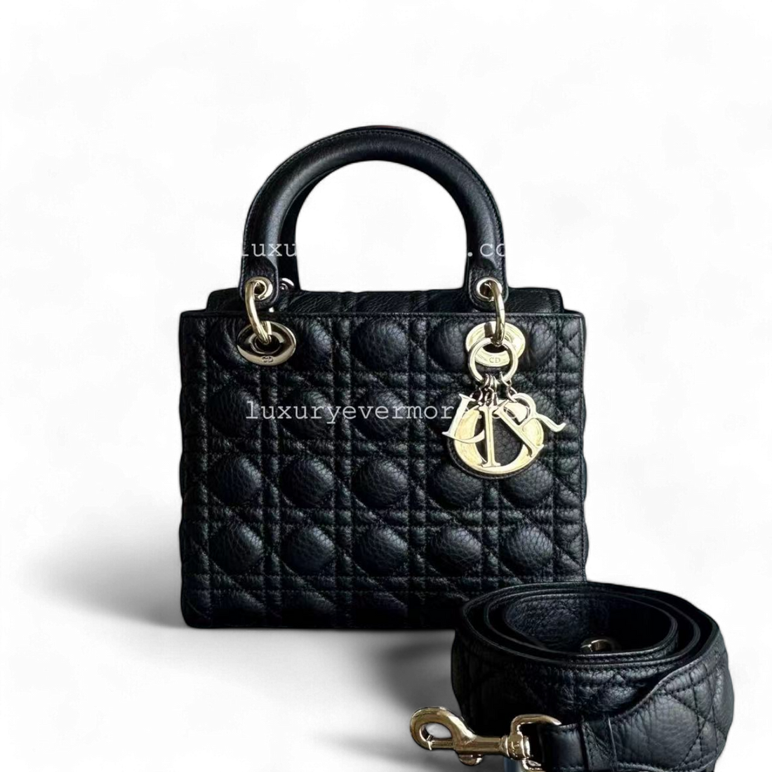 Overview Experience timeless elegance with the Dior Lady Medium Grained Calfskin bag in classic black....