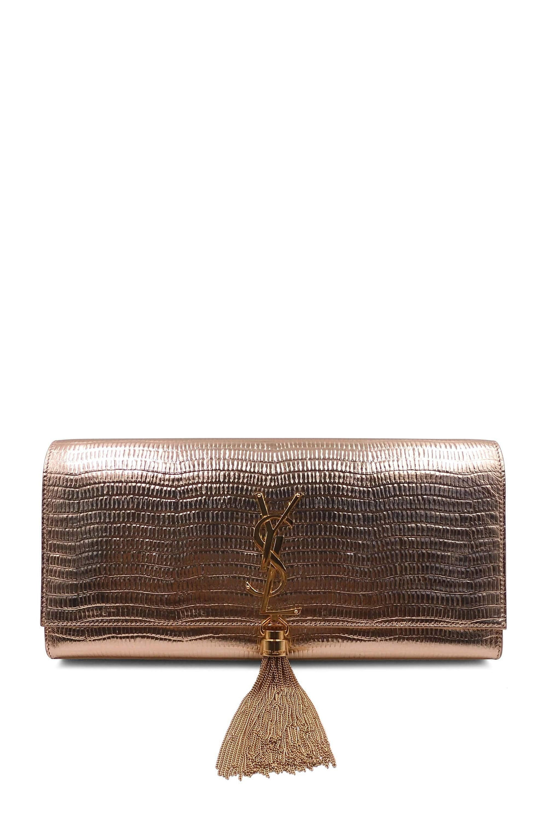 Classic Monogram Kate Clutch with Tassel Lizard Embossed Gold