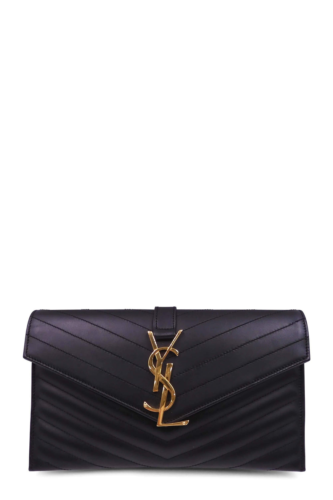 46% off retail S2100DescriptionThis Saint Laurent Envelope Monogram Clutch features a smooth calfskin leather with...