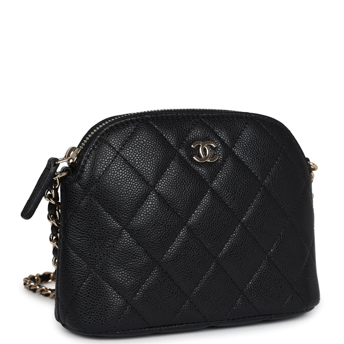 Chanel Mini Clutch with Chain Crossbody Bag Black Caviar Light Gold Hardware
