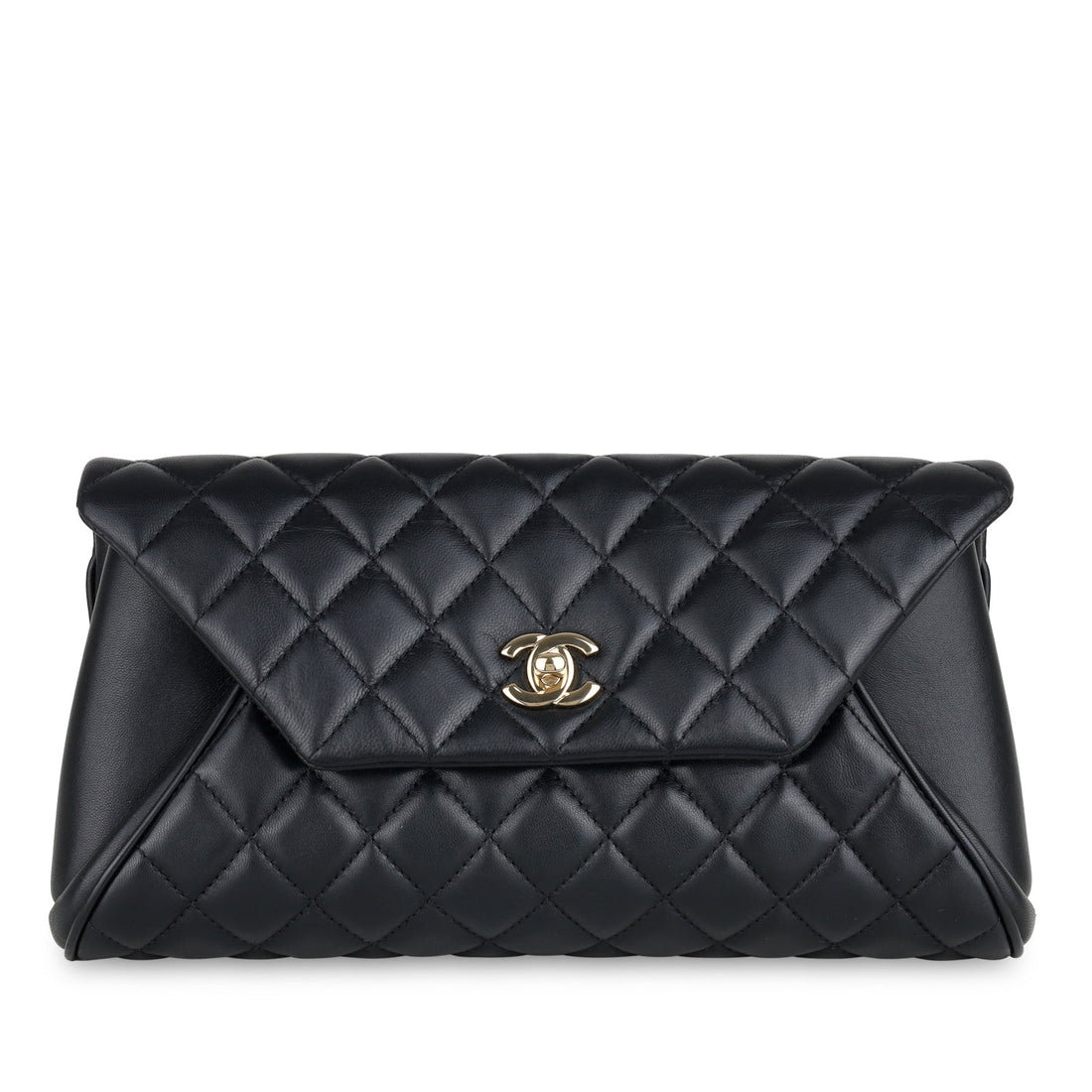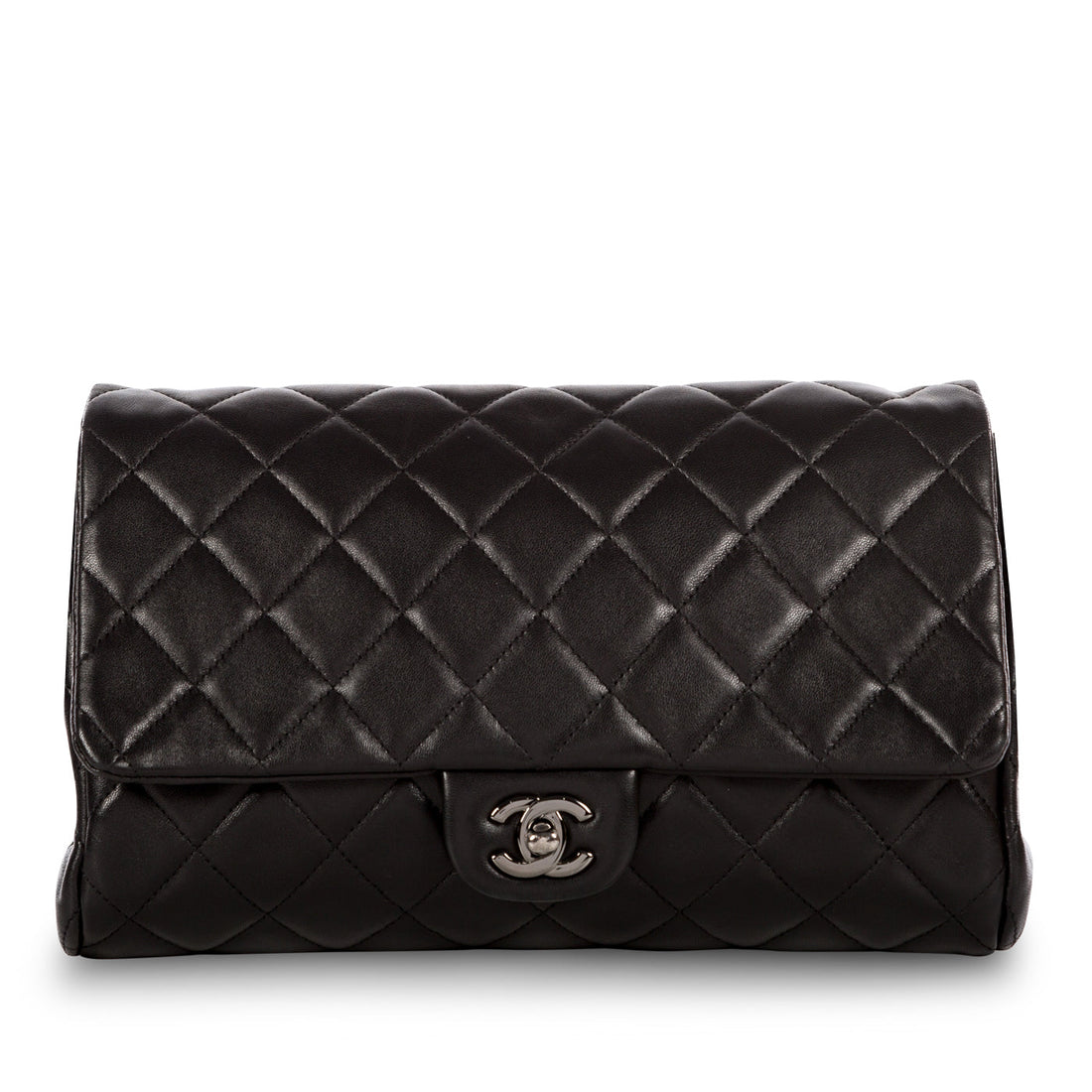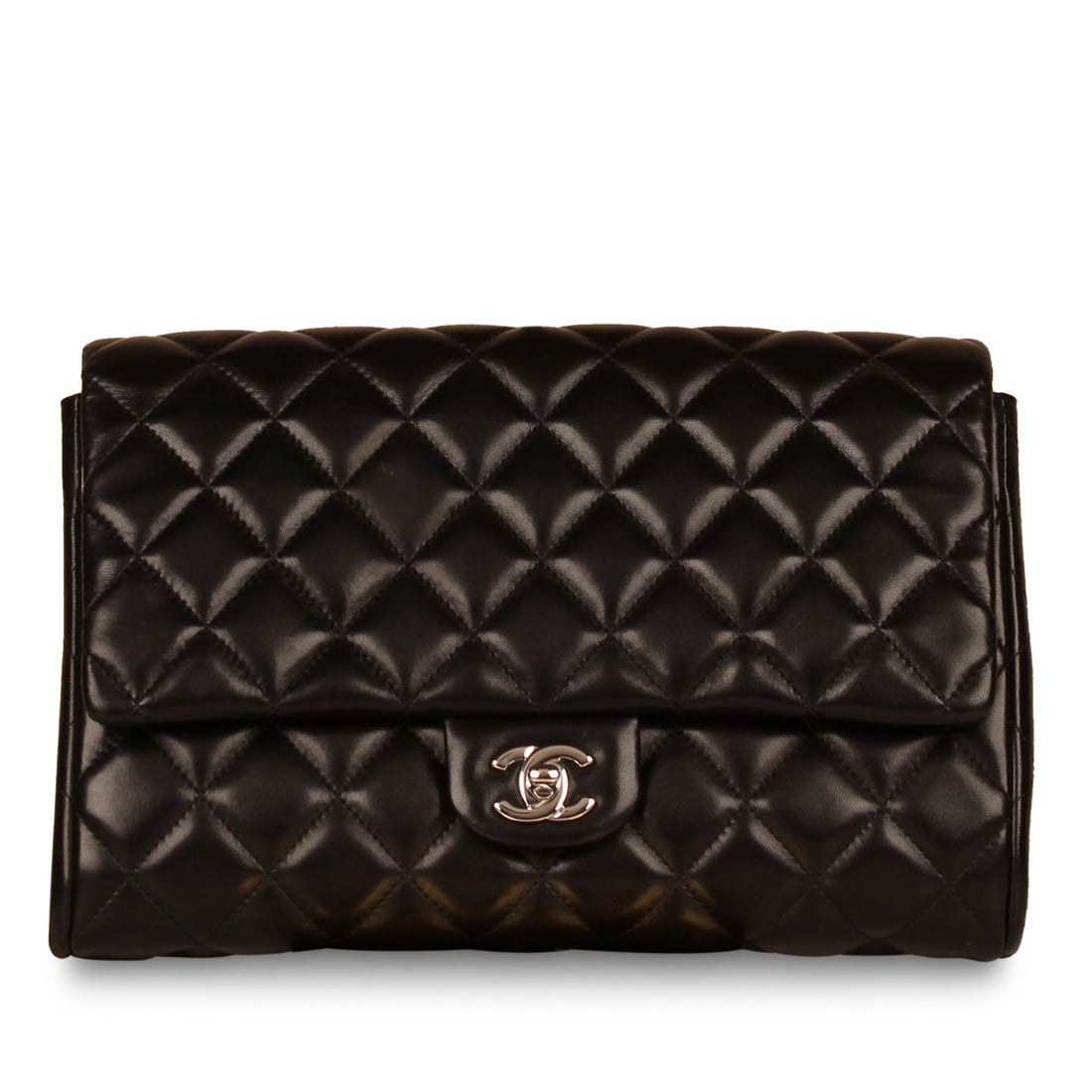 Brilliantly classic and unapologetically aged, Chanel presents their quilted Lambskin Clutch. Crafted from black quilted...
