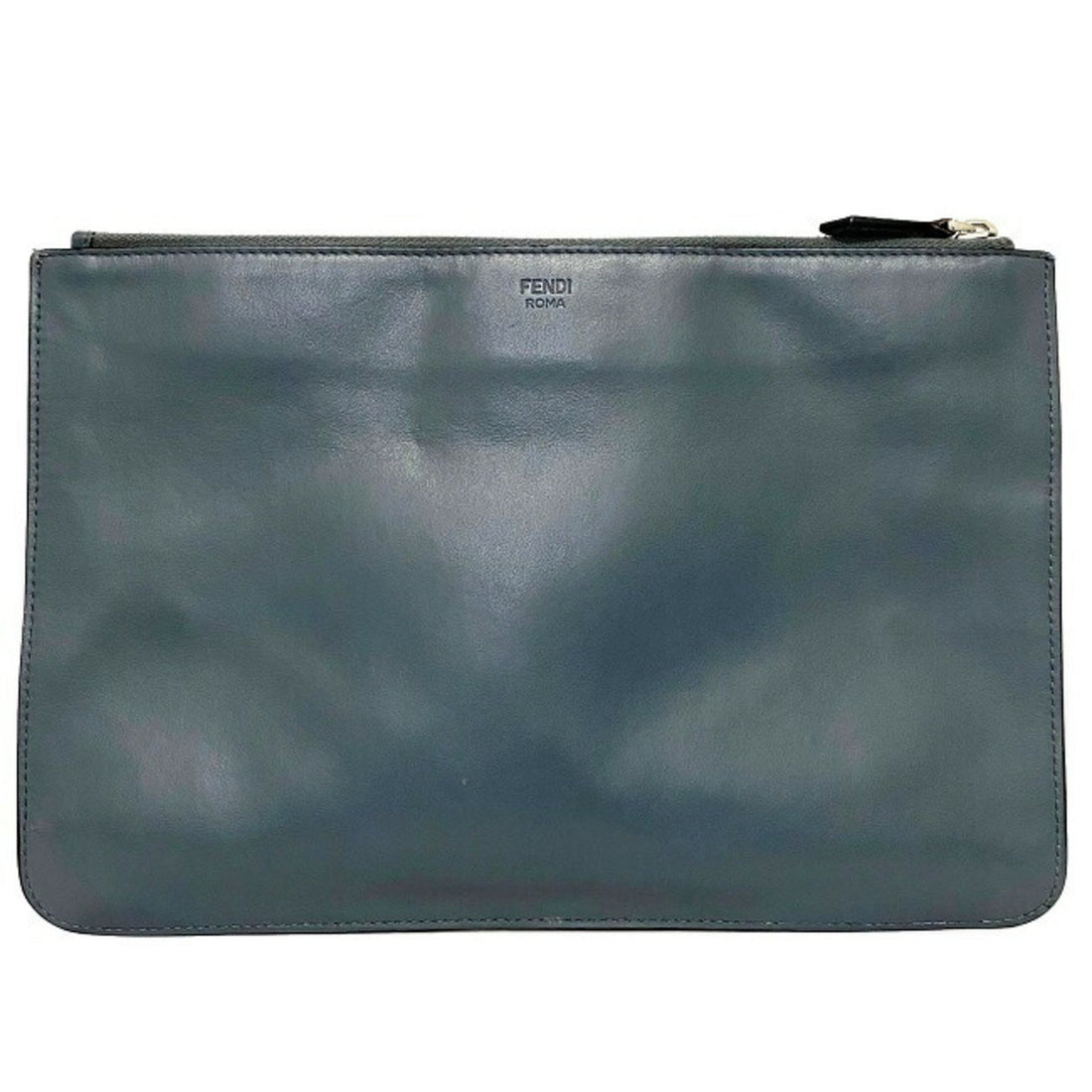 Fendi Clutch Bag Gray Silver Mon 7N0078 Plate Pouch Second Leather FENDI Women's Men's DualBrand:...