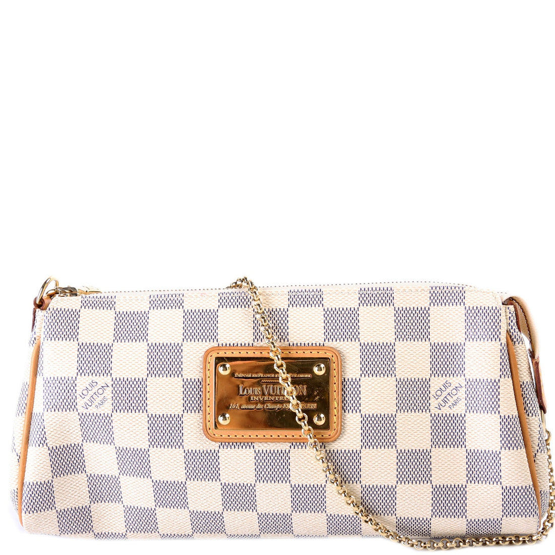This Louis Vuitton Eva Clutchis eye catching bag. The exterior is in the classic Damier Azur...