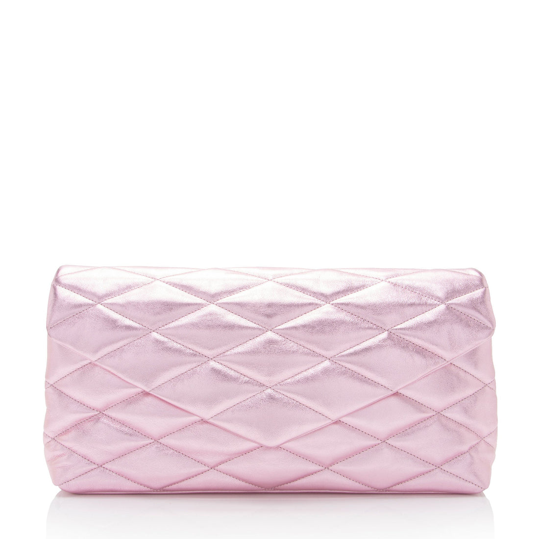 Saint Laurent Metallic Quilted Lambskin Puffer Sade Clutch (SHF-dsF7Ye)