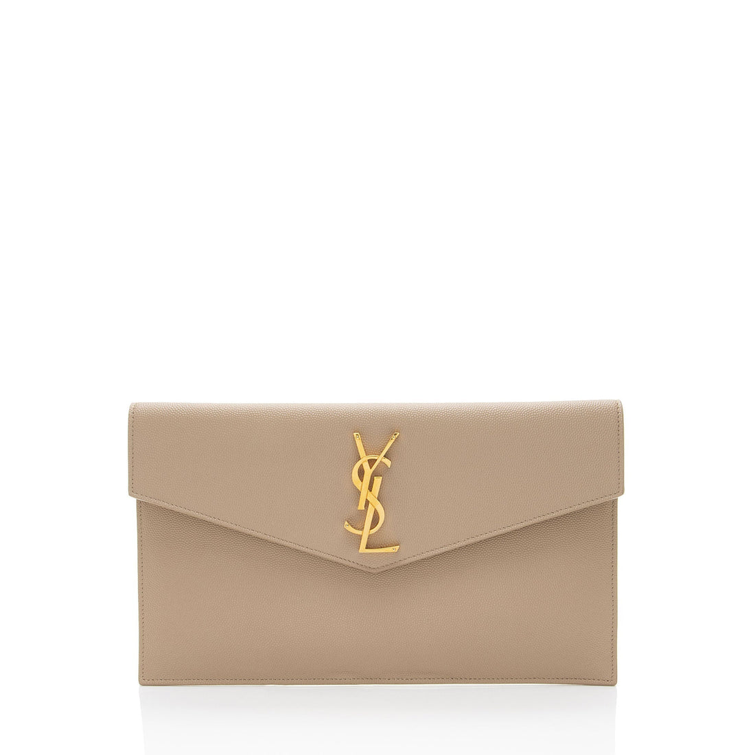 Saint Laurent Grain de Poudre Monogram Uptown Envelope Clutch (SHF-b2iDEy)