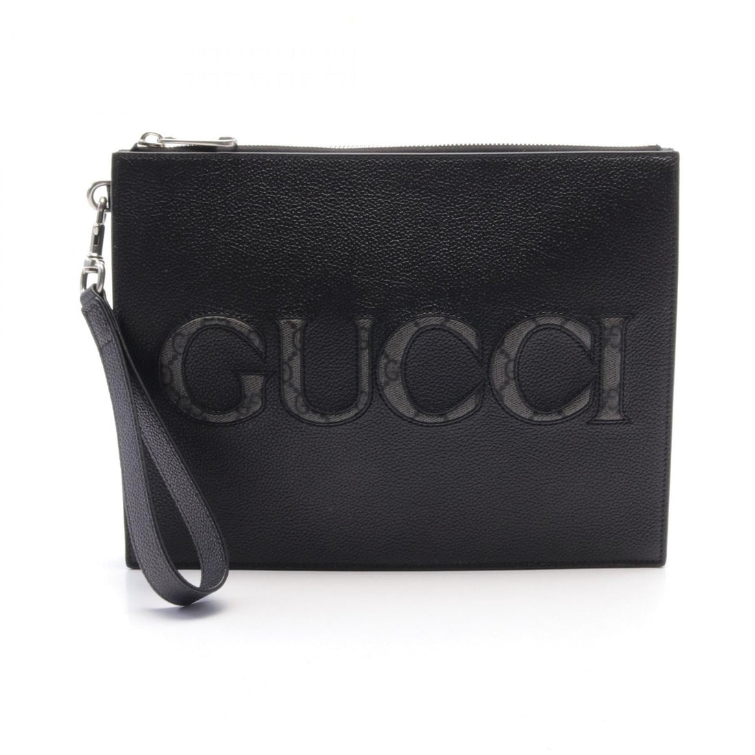 Gucci GG Supreme Leather PVC Clutch Bag Black