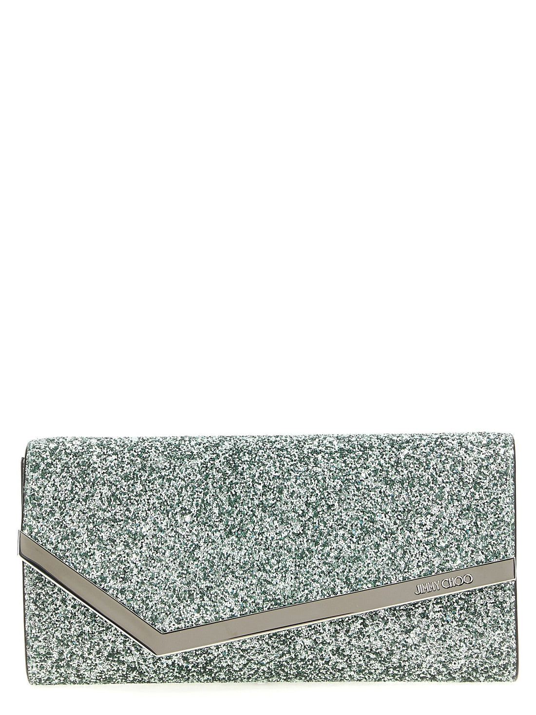 Emmie' clutch bag in glitter fabric with metal details, magnetic flap closure, removable chain shoulder...