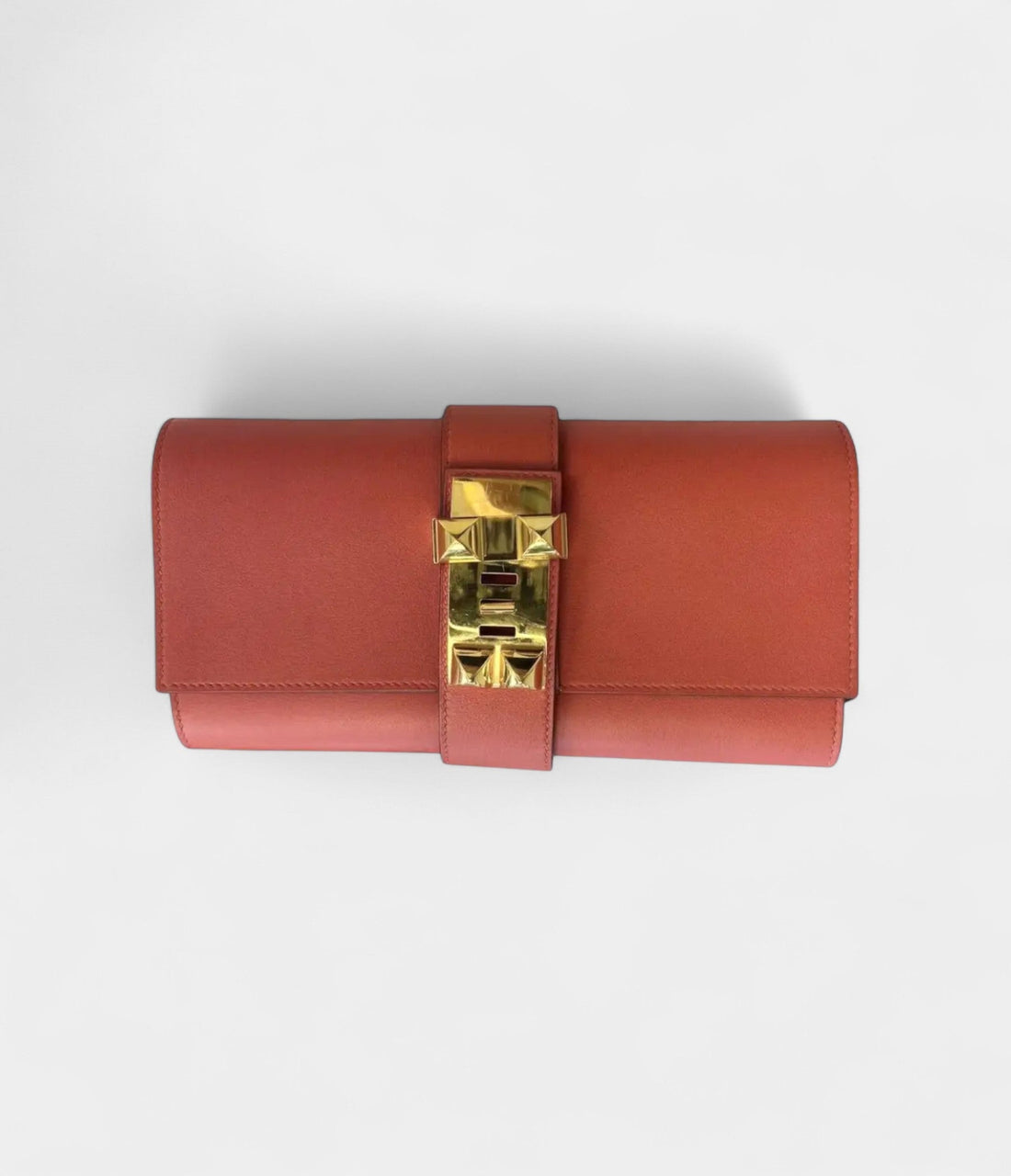 The Hermès Médor Red Leather Clutch is a striking fusion of minimalist design and bold detailing....