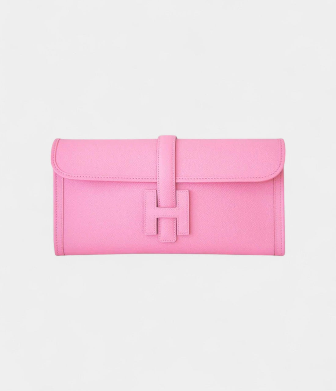 The Hermès Mini Jige Clutch in Rose Azalee Evercolor leather is a delicate and luxurious...