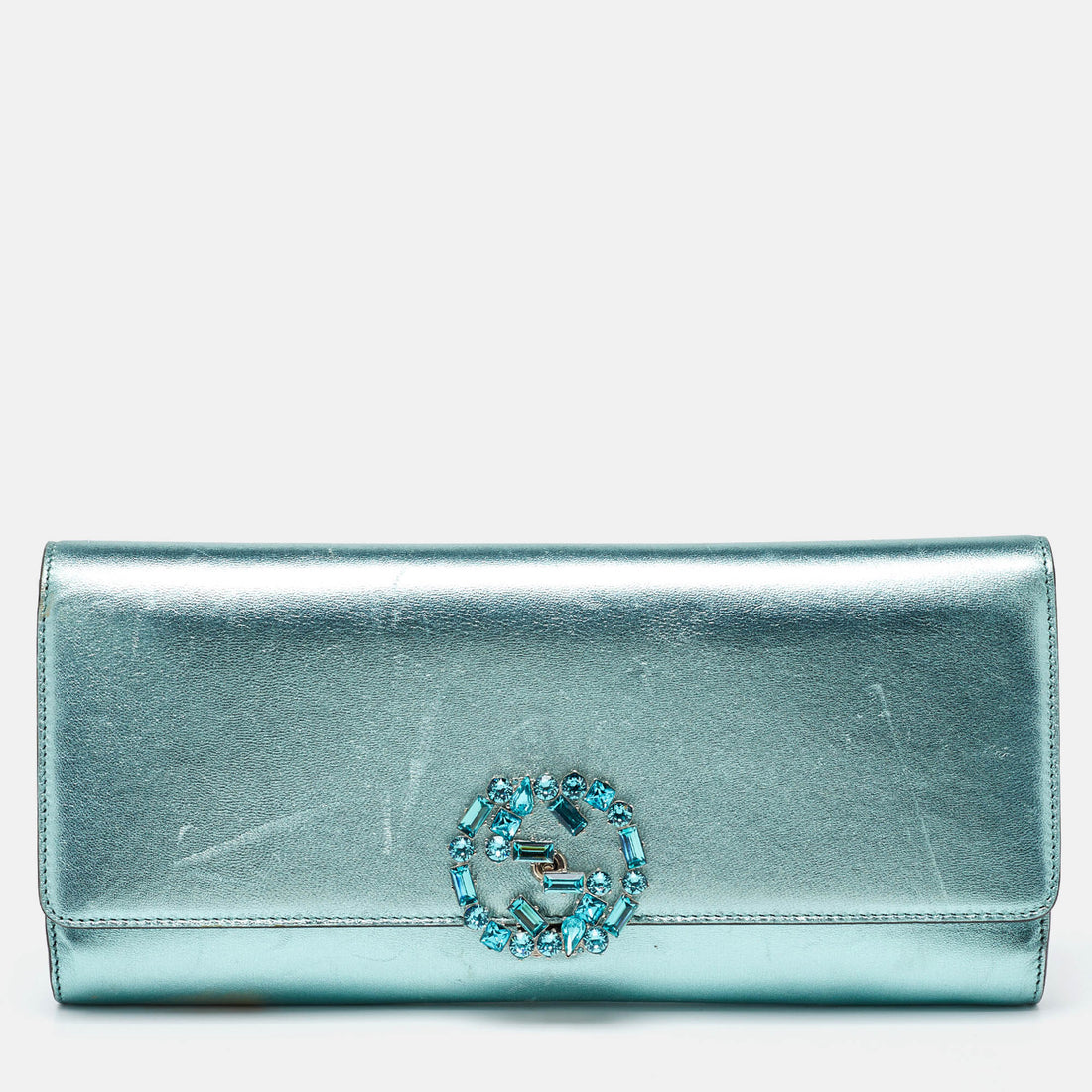 Gucci Leather Crystal Interlocking G Broadway Clutch