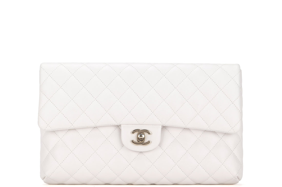 CHANEL FLAP CLUTH (2851xxxx) OFF WHITE QUILTED CAVIAR LEATHER WITH GOLD CHAIN, WITH , DUST COVER & BOX