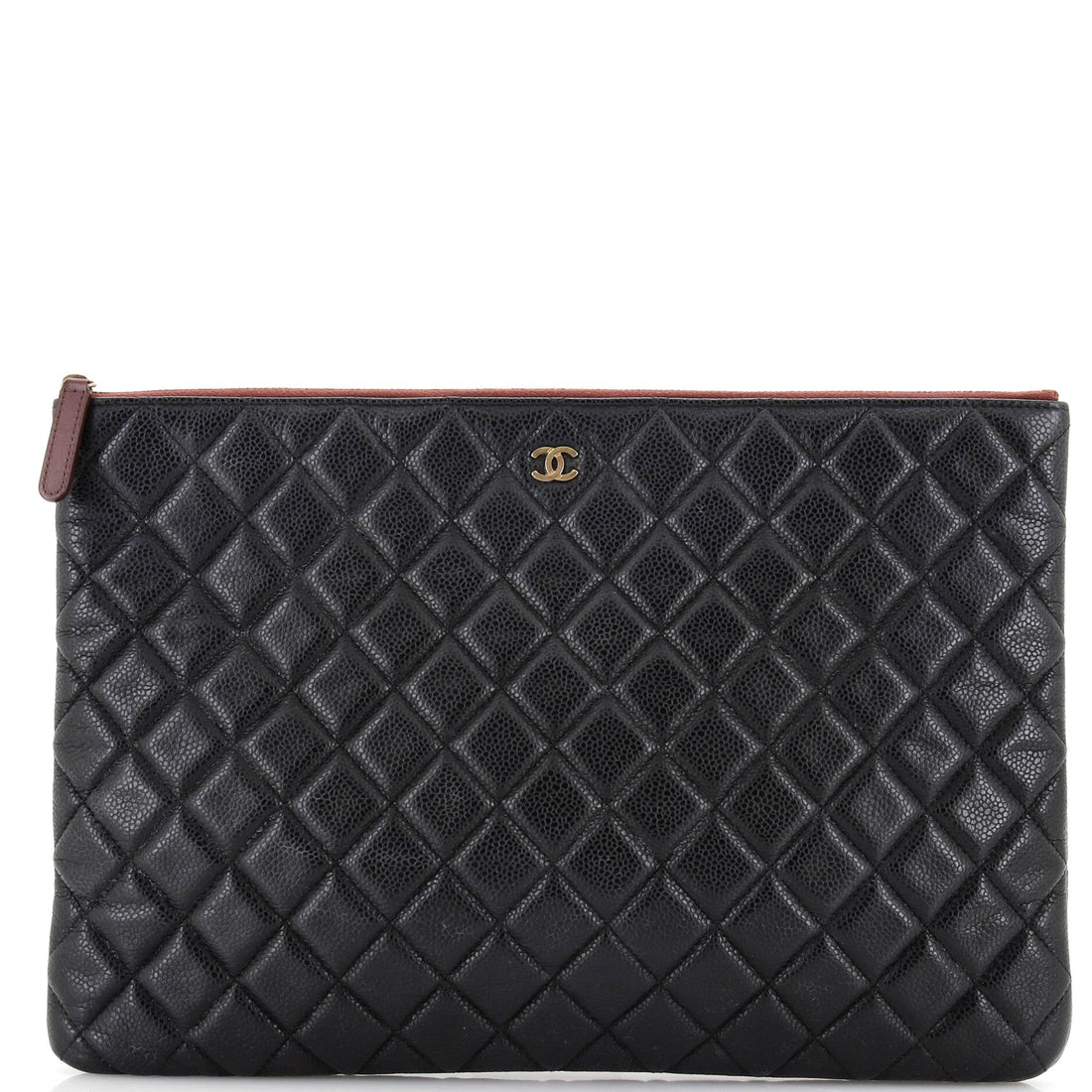 CHANEL O Case Clutch Quilted Caviar Large