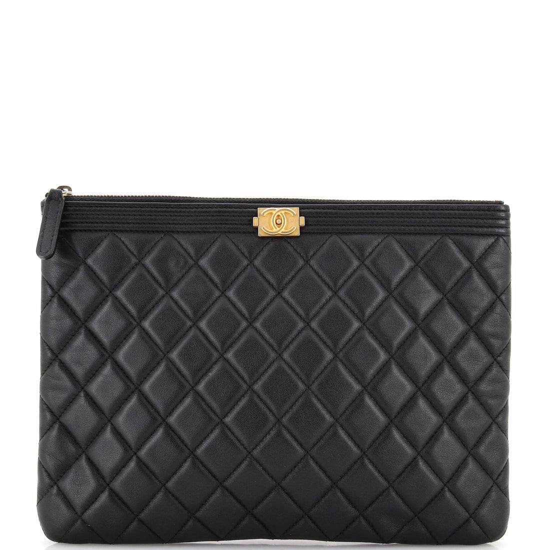 CHANEL Boy O Case Clutch Quilted Lambskin Medium