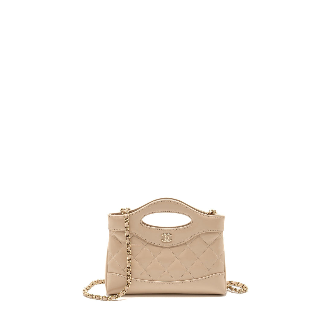 Chanel Mini 31 clutch with chain shiny lambskin light beige LGHW ( microchip)