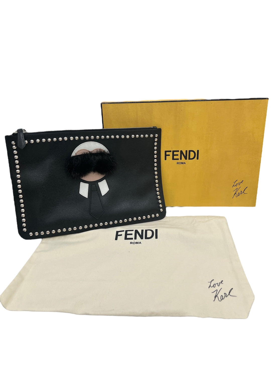 This FENDI Karlito Clutch Bag is the perfect addition to any outfit. Crafted from black...
